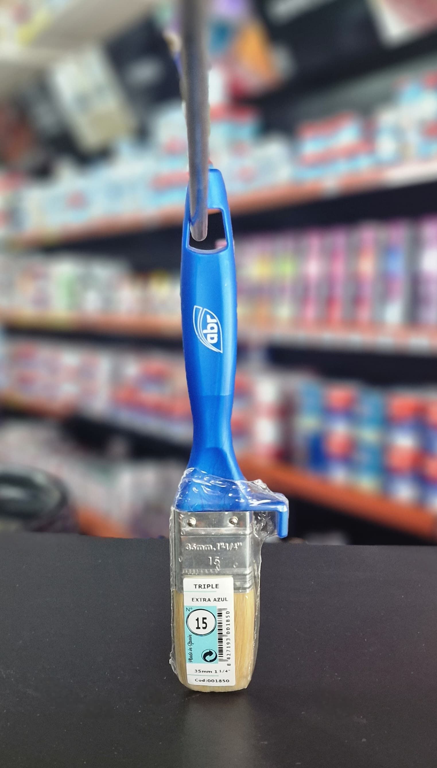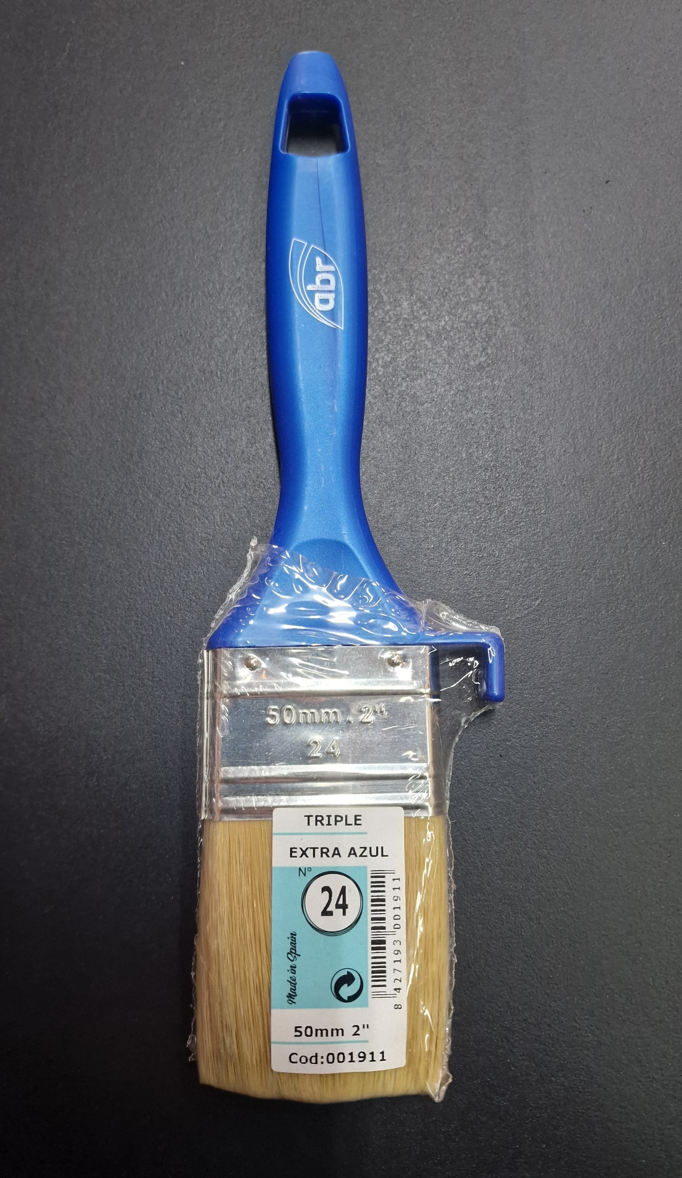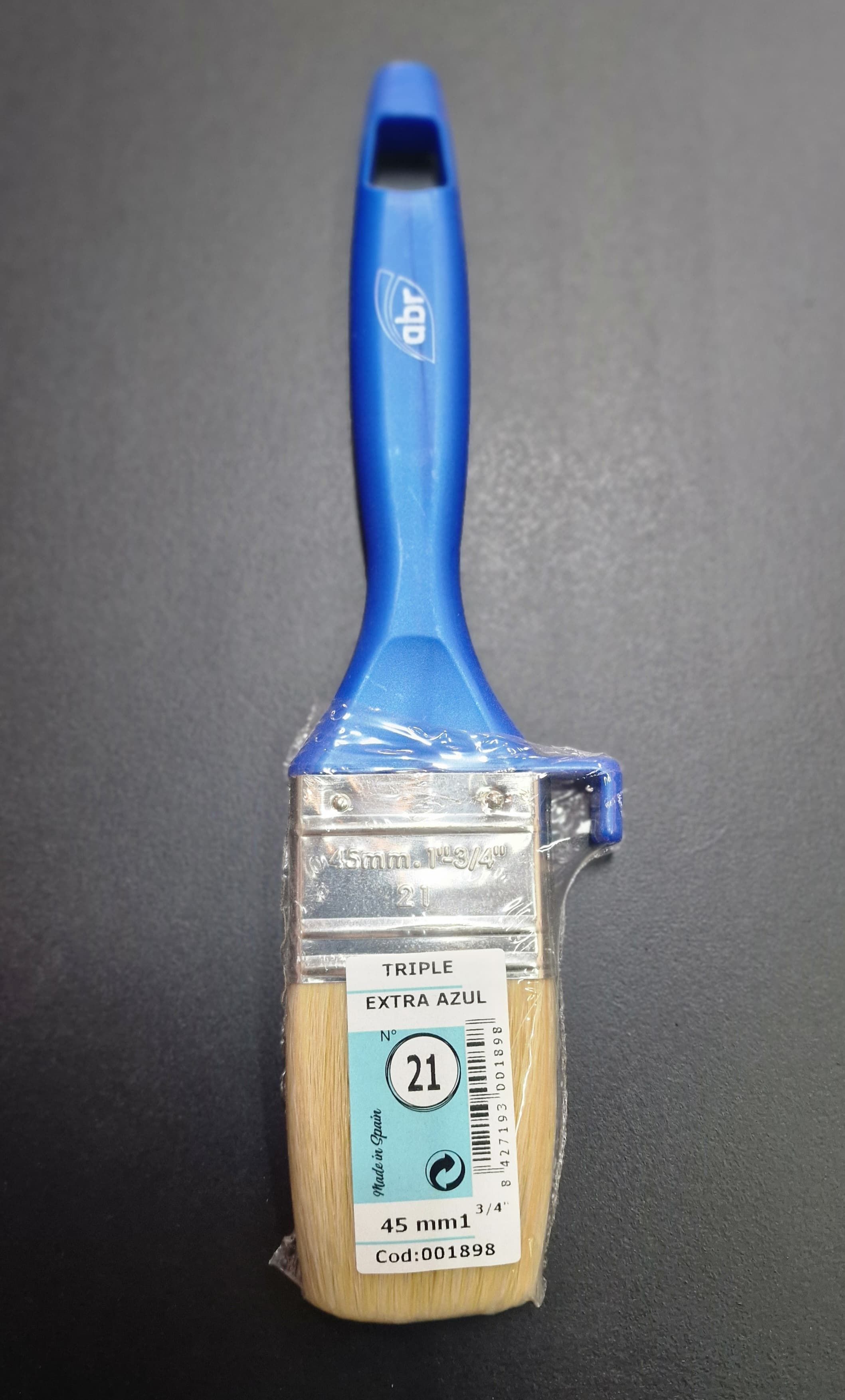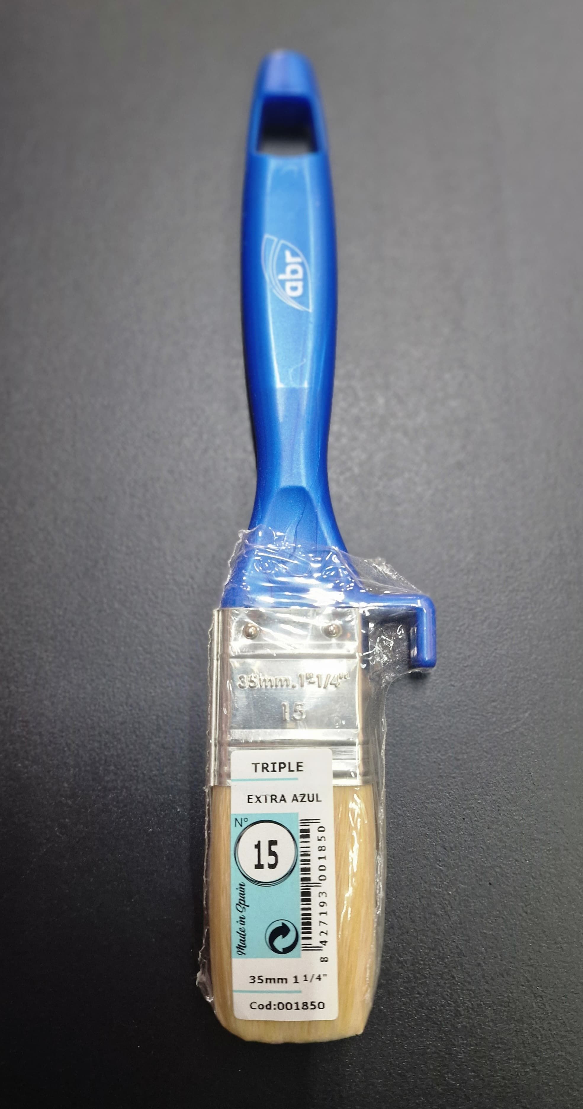 Buen cubrimiento y rendición. Pelo mezclas de fibras naturales y filamentos suaves P.B.T. con virola niquelada. Mango triple de polipropileno color azul con colgador. Todo tipo de pinturas en general.
